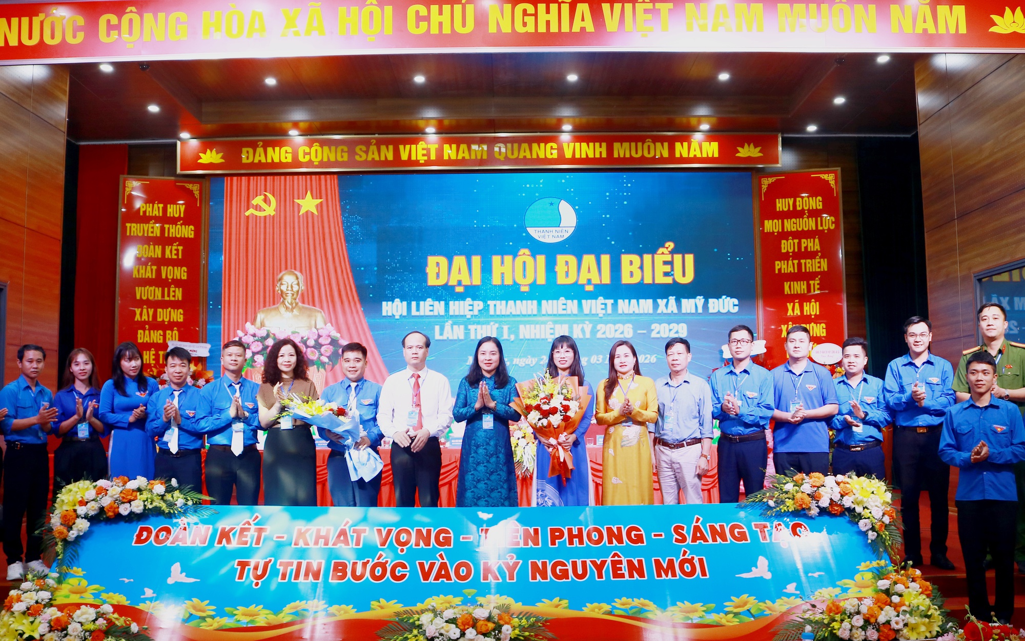 Lãnh đạo Đảng uỷ, HDND, UBND, UBMTTQ xã Mỹ Đức tặng hoa chúc mừng đại hội đại biểu Hội LHTN xã Mỹ Đức lần thứ I, nhiệm kỳ 2026 - 2030